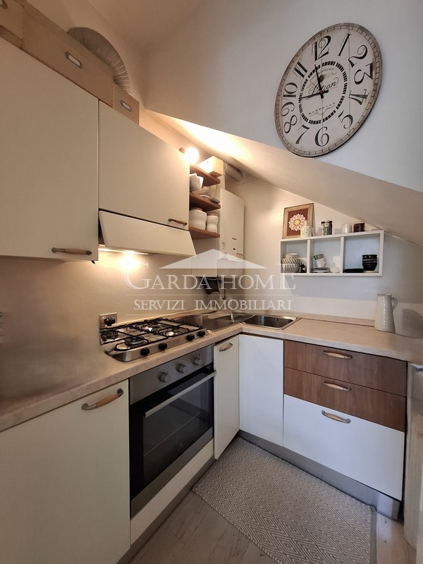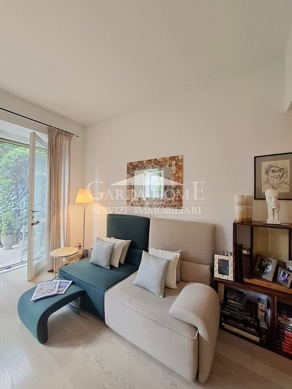 Nur 300 Meter vom Ufer des Gardasees und wenige Schritte vom historischen Zentrum von Desenzano del Garda entfernt, ist diese hübsche, geschmackvoll renovierte Maisonette-Wohnung der ideale Rückzugsort für alle, die inmitten von Grün und Ruhe in einem alten Innenhof leben möchten.