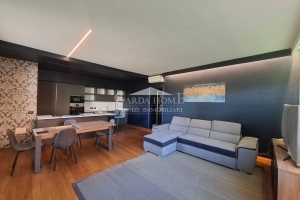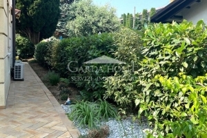 L'appartamento presenta un ampio soggiorno luminoso con cucina a vista moderna ed uno spazioso terrazzo oltre al giardino che corrono sui tre lati della casa.