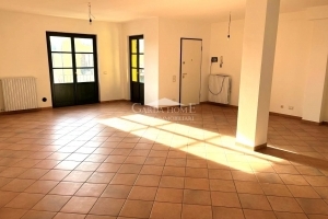 L’appartamento è situato al primo piano e si accede da un piccolo e privato ballatoio. Gli ambienti interni sono estremamente luminosi grazie alle grandi finestre e porte-finestre con infissi in legno scuro che donano calore agli spazi. La zona giorno di generose dimensioni open space offre grande versatilità nell’arredamento ed è rivestita da eleganti piastrelle color cotto. Il balcone si affaccia sull'interno della corte.
